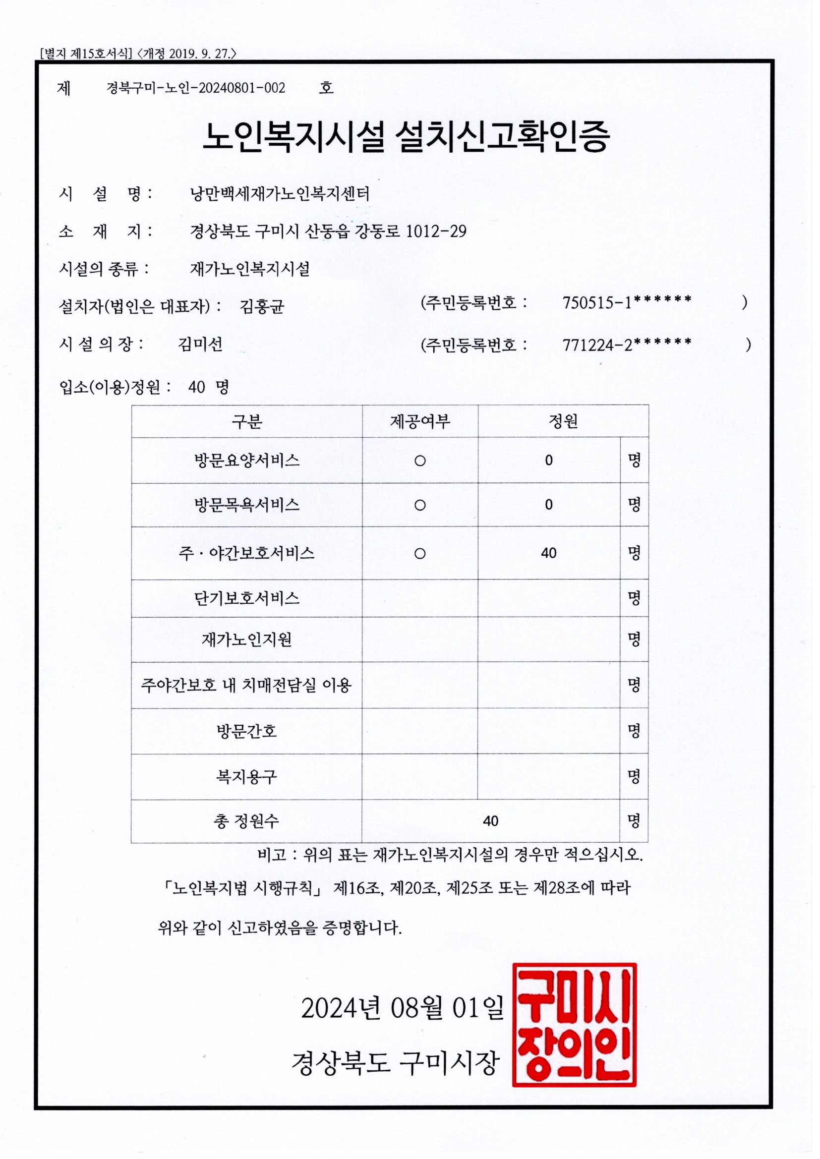 어르신의 일상에 소소한 행복과 낭만을 선물하는 낭만백세 주간보호센터 입니다.